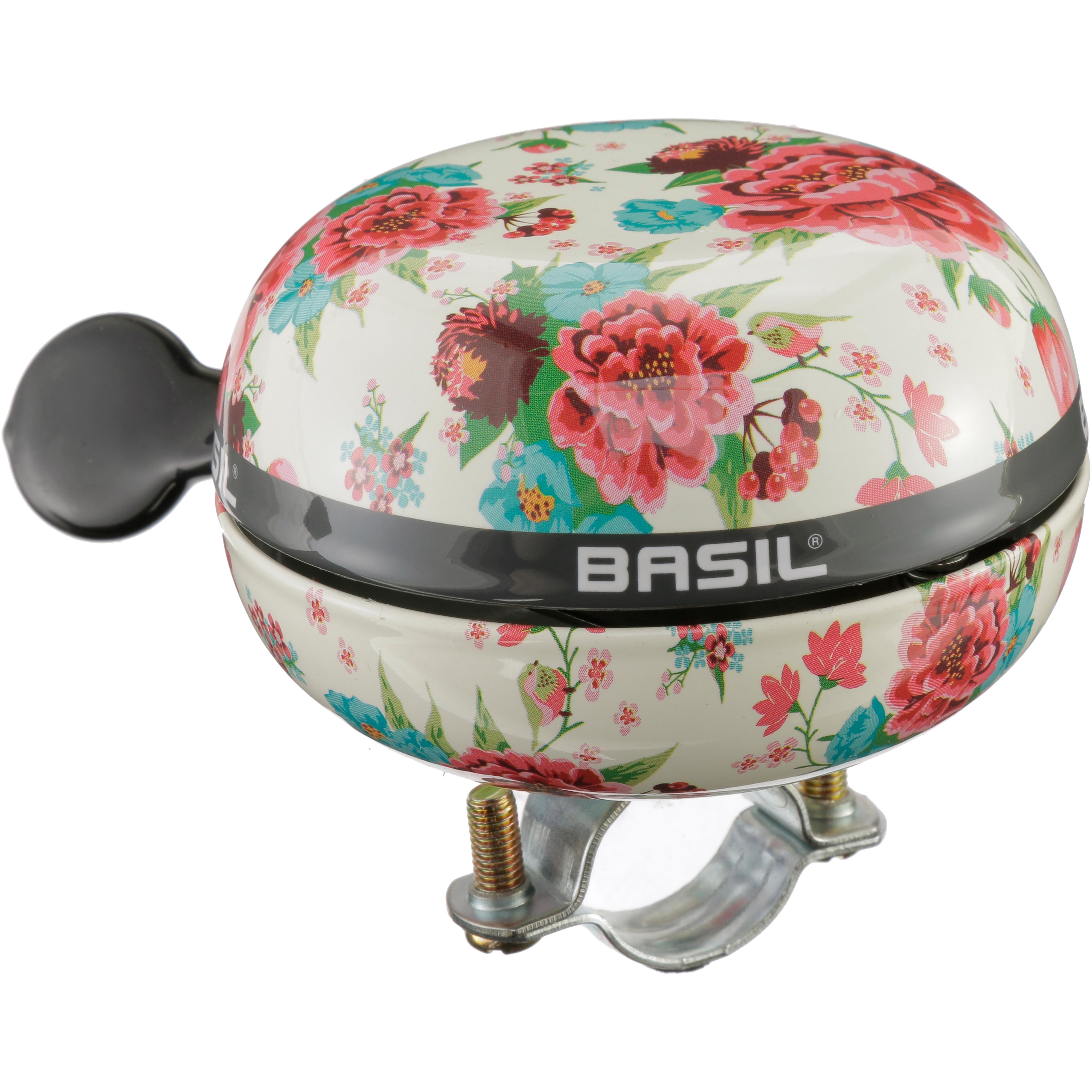 Basil Bloom Big Bell Bicycle Bell 80mm White With Flowers Basil