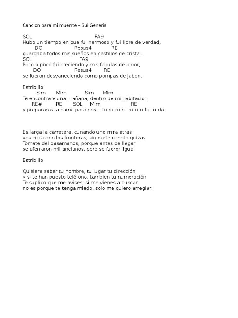 Sui Generis Cancion Para Mi Muerte Letra Y Acordes Pdf